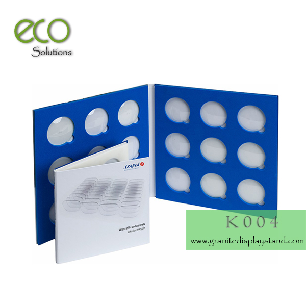 This sample binder is dedicated to a specific type of eyeglass lenses samples. It also widely used in Keramik, Porzellan, Glas, oder Naturstein.