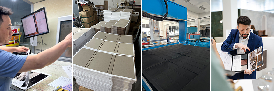 Hergestellt aus 3 mm dicke, umweltfreundliche Graupappe, Alle unsere Produktmusterbücher verfügen über eine solide Konstruktion zur Aufnahme und zum Transport schwerer Steinproben oder Holzproduktproben.