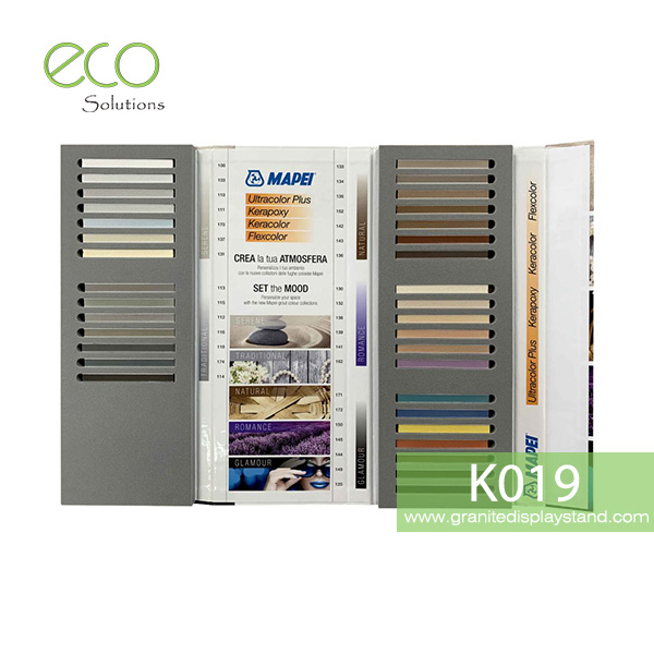 El folleto de muestras de baldosas de lechada también como carpeta de muestras de lechada o libro de muestras para materiales de construcción como cemento., azulejo de lechada, renderizar color. El muestrario hecho de cartón ecológico de 1800 g de espesor con alta- finalizar la impresión de imágenes e información en el exterior. Los materiales de alta calidad garantizarán un uso a largo plazo..