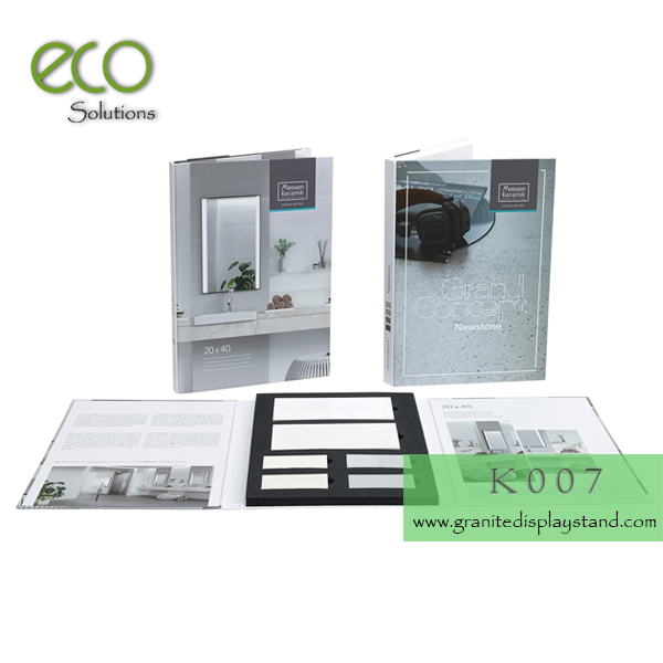 Los muestrarios de cuarzo también sirven como carpeta de muestras de piedra o carpeta de muestras para virutas de muestra de piedra de cuarzo.. La carpeta hecha de 3 mm Cartón de espesor ecológico con alta- finalizar la impresión de imágenes e información en el exterior. Los materiales de alta calidad garantizarán un uso a largo plazo..