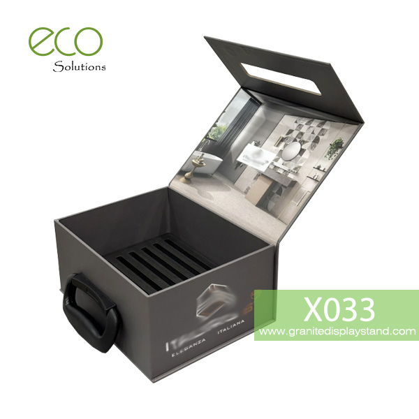Contoh ide Kotak Pajangan untuk Granit, Marmer, Batu Kuarsa,Sampel ubin porselen. Desain tampilan sampel ramah lingkungan dan menghasilkan kotak sampel untuk sampel arsitektur.