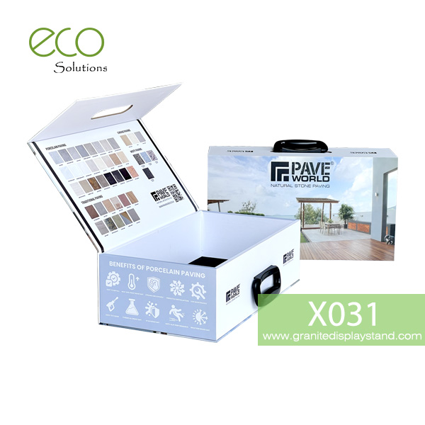 Shop Porcelain Paving Stone Venner Sample Box to display your new collection of paver stone, ledger stone,pocelain paving and stone veneer. Samples are mounted in foam cutouts and can easily be removed for display to clients.