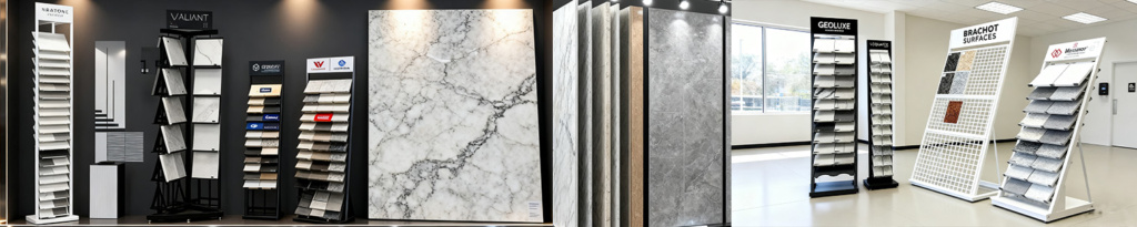 Eco sample display offer sample display solutions and sample display product such as quartz stone display rack, Granite display rack, tile display stand, stone sample box, tile sample binder, sample boards with years experience.