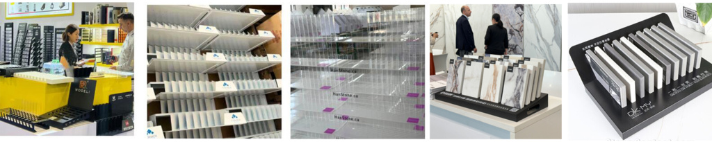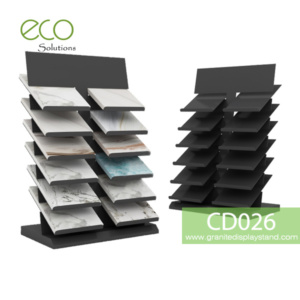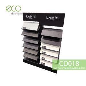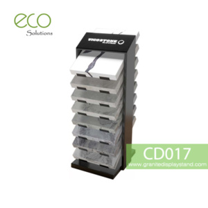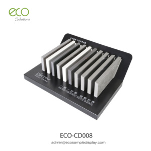 Custom-design counter top quartz sample display stand are widely used in natural stone, granite, marble, quartz stone. porcelain tiles and other building materials. The table top display stand made of a various of raw materials as Metal, wood, acrylic, PVC.