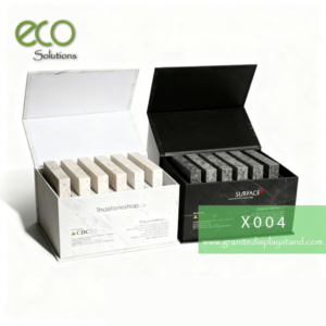 Sample display Box is the most popular premium packaging type and sample presentation kits for granite, marble, quartz stone, tiles, flooring,wood and other archetictural surface industries. A large number of samples, efficiently and relative easily collated by a sample box. Sample display boxes made of Cardbaord, Wood, Aluminum to suit for different type of samples usage. Discover what you like and email us for Pricing.