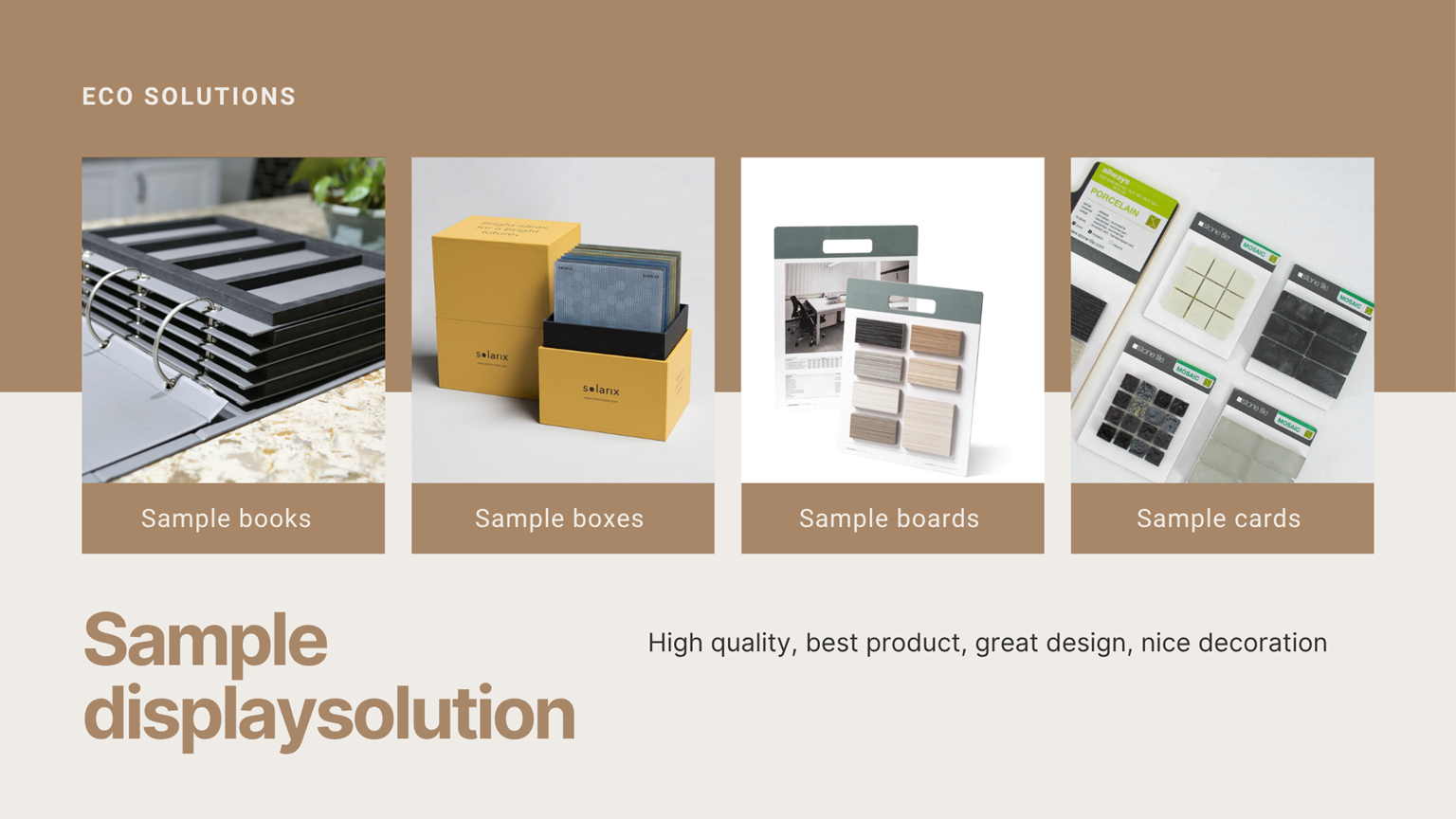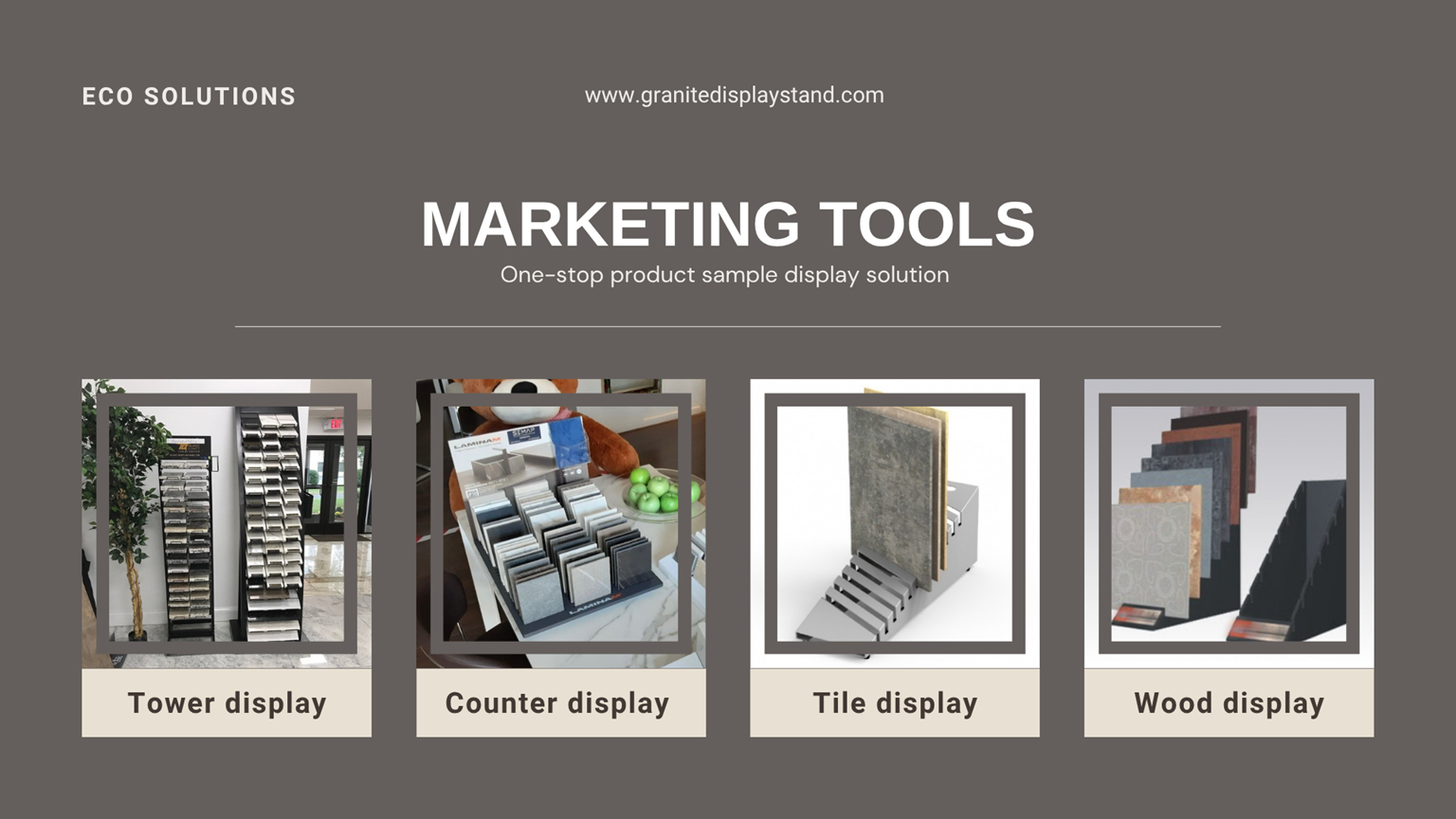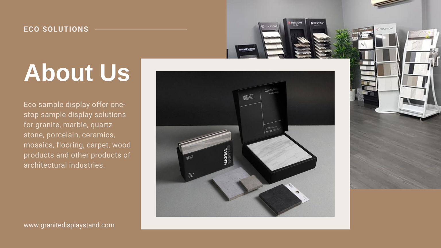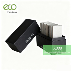 Architectural Material Sampling Box design to display granite, marble, quartz stone, porcelain, ceramics, tiles, concrete and other architecutural materials.