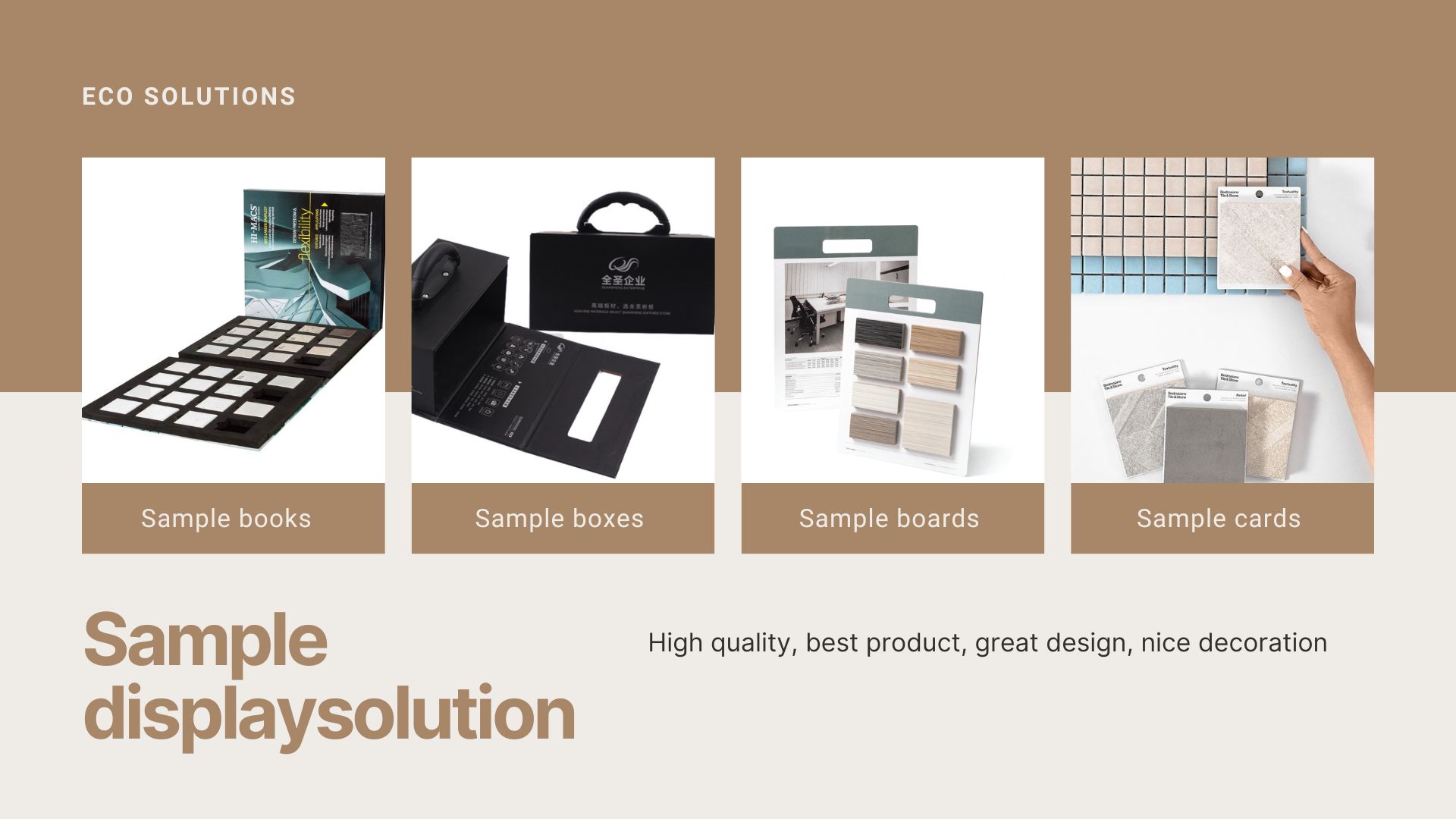 Sample display Boxes for Granite Marble Quartz Stone Porcelain Tile made of Cardboard , inside with cut-into size foam EVA or PE Foams are perfect for building material product sample presentation. Such as Granite, marble,quartz stone, porcelain tiles, wood flooring tiles, wooden products.