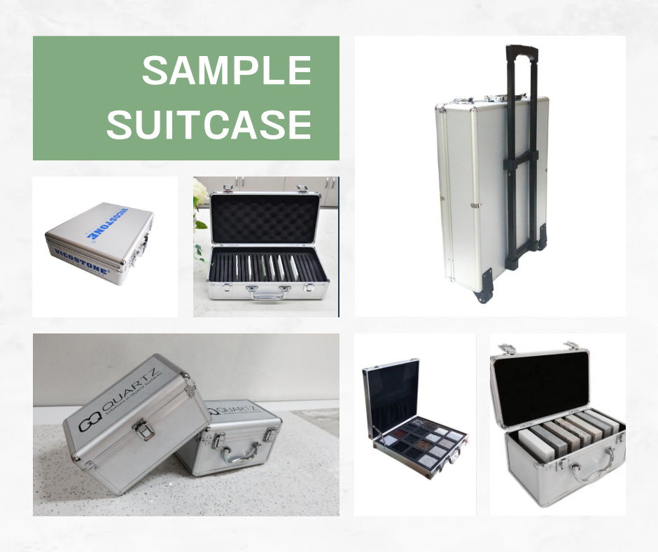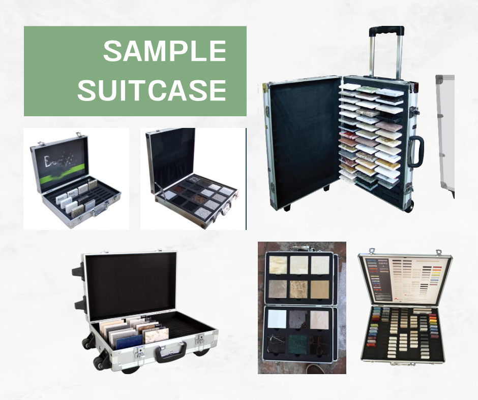 Aluminum sample case is the most strongest suitcase for granite, marble, quartz stone or porcelain tile samples. Aluminum Stone sample suitcase made of MDF board with aluminum sheet with durable hardware able to carry stone samples 15 KGS.