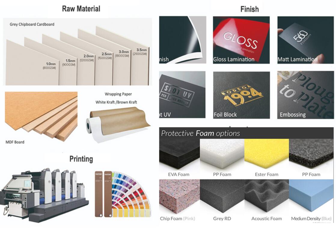 Eco Sample Display manufacturer various styles of sample boxes from varying materials, the most popular materials used are: