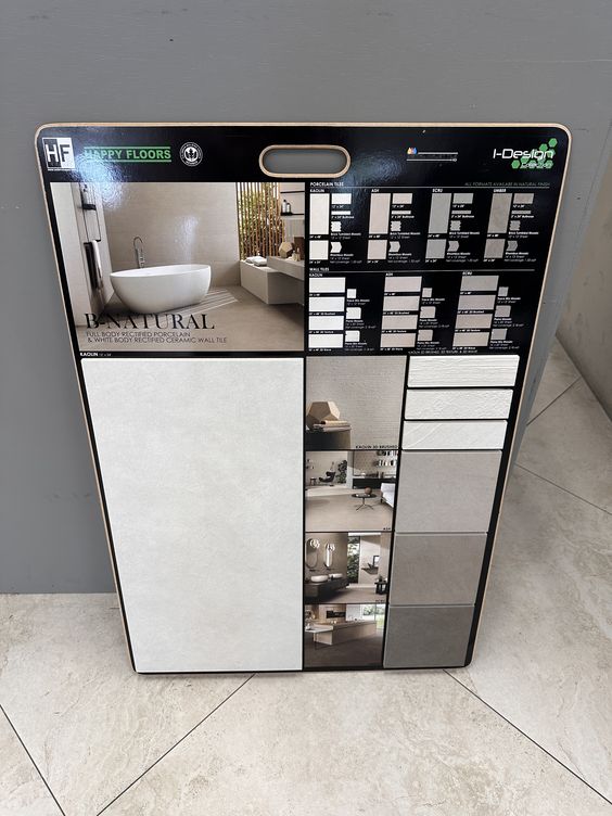 Sample handboard made of MDF with melamine paper are widely used for ceramics, tiles, flooring sample display in the showroom. We create the display boards according to your product sample dimentions. Your brand logo can be print on the top of the boards.