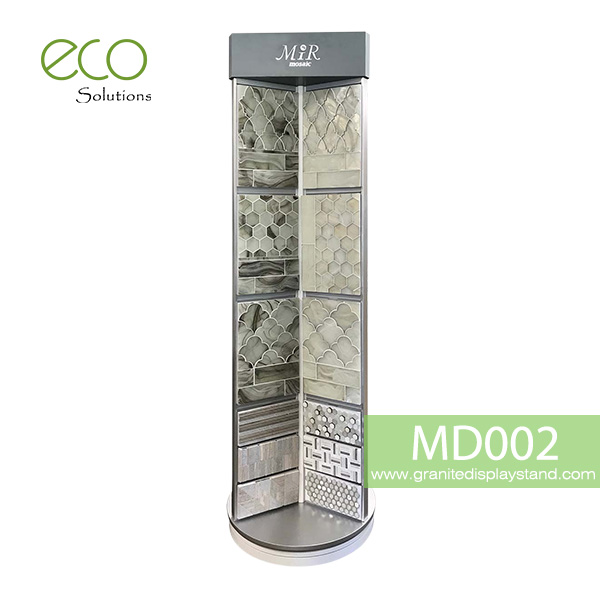 Mosaic display stand made of metal with MDF base is perfect for glass mosaics, ceramics, tiles, flooring ,stone sample display in the showroom. We create the display racks according to your product sample dimentions. Your brand logo can be print on the top of the boards.