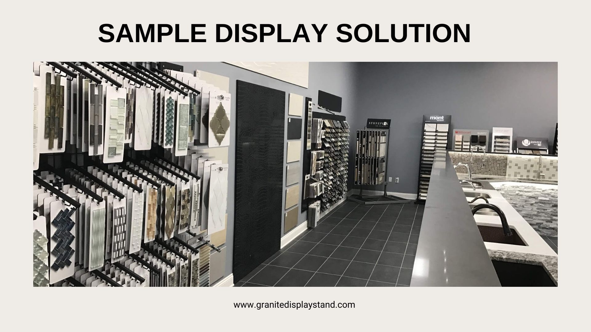 Eco Sample Display manufacture Granite Sample Display Racks,table displays, tile display stands, mosaic display stand, Tile sample books, stone sample boxes, metal display boxes, MDF sample boards, paper sample boards, pvc sample boards according to your sample size and thickness.