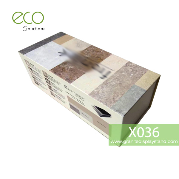 Sample display Boxes for Granite Marble Quartz Stone Porcelain Tile made of Cardboard , inside with cut-into size foam EVA or PE Foams are perfect for building material product sample presentation. Such as Granite, marble,quartz stone, porcelain tiles, wood flooring tiles, wooden products.