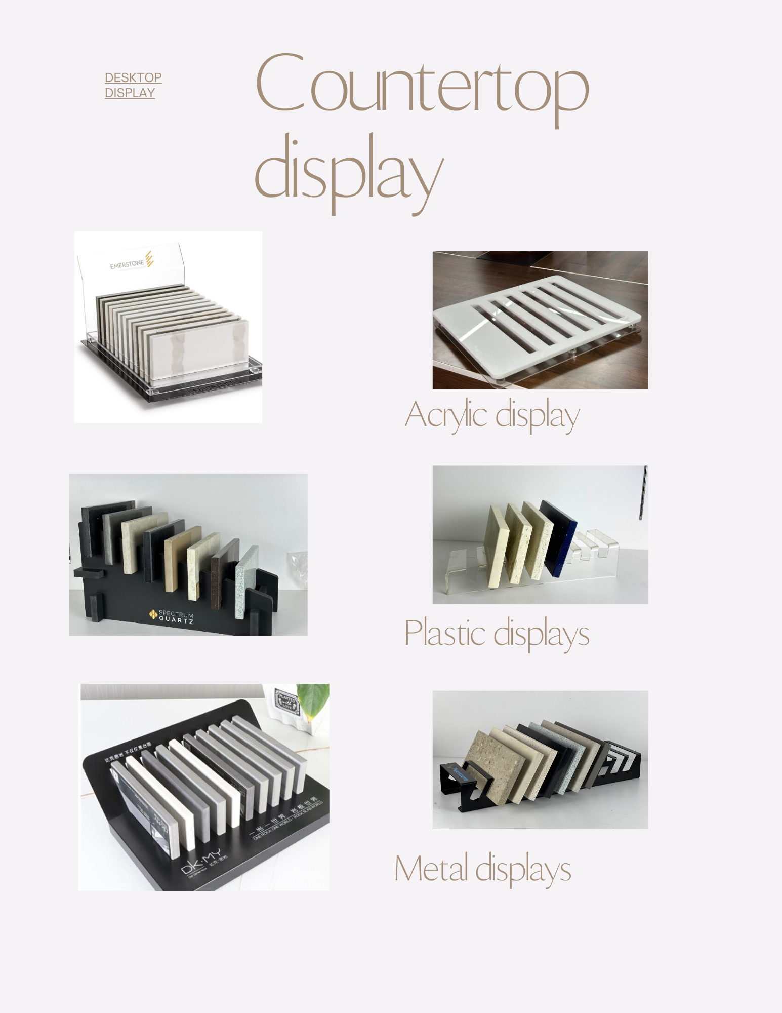 - WIDE APPLICATIONS: Custom made sample display for distributors or dealer’s showroom. Present your granite, marble, quartz stone colors to customers. Order this counter display stand to display your tile samples, quartz , marble, granite stone samples or glass tile samples.