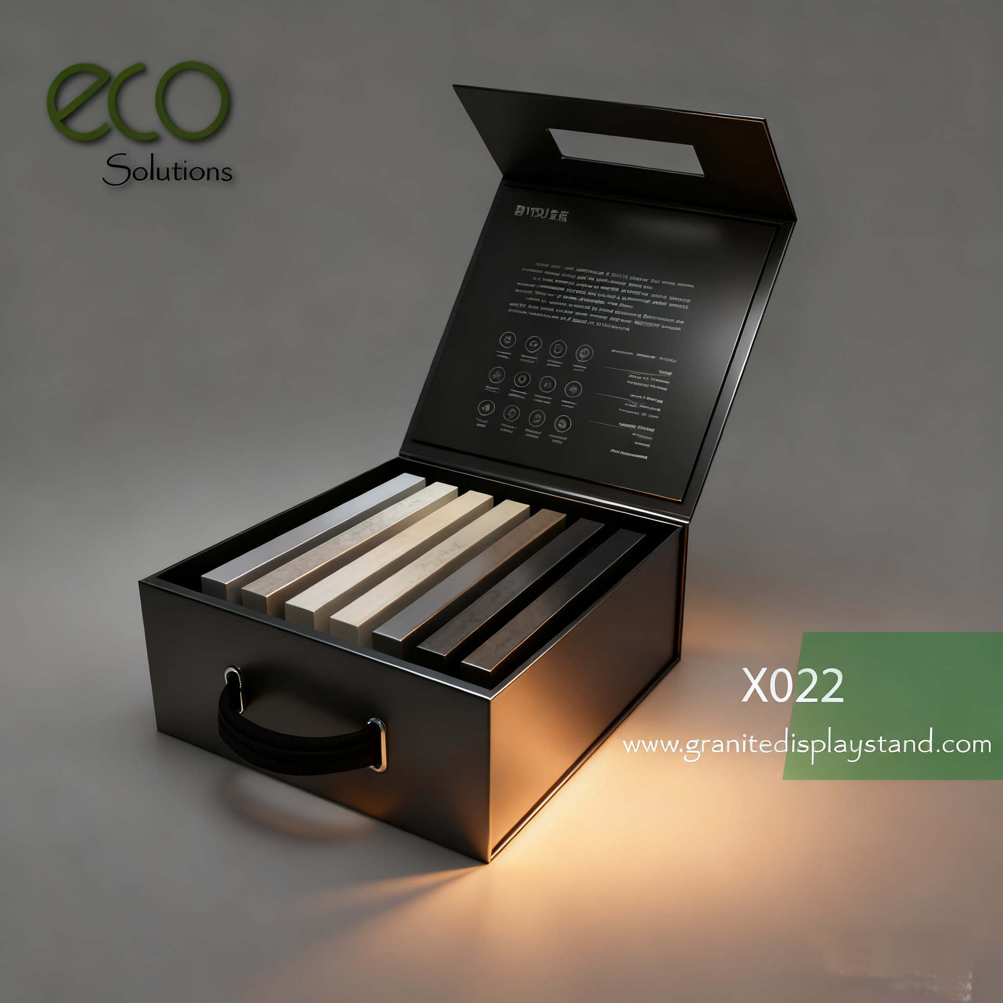 Eco sample display design and produce sample boxes, sample cases for building material sample chips, such as granite samples, marble stone samples, Amostras de pedra de quartzo, amostras de ladrilhos, flooring sample chips.