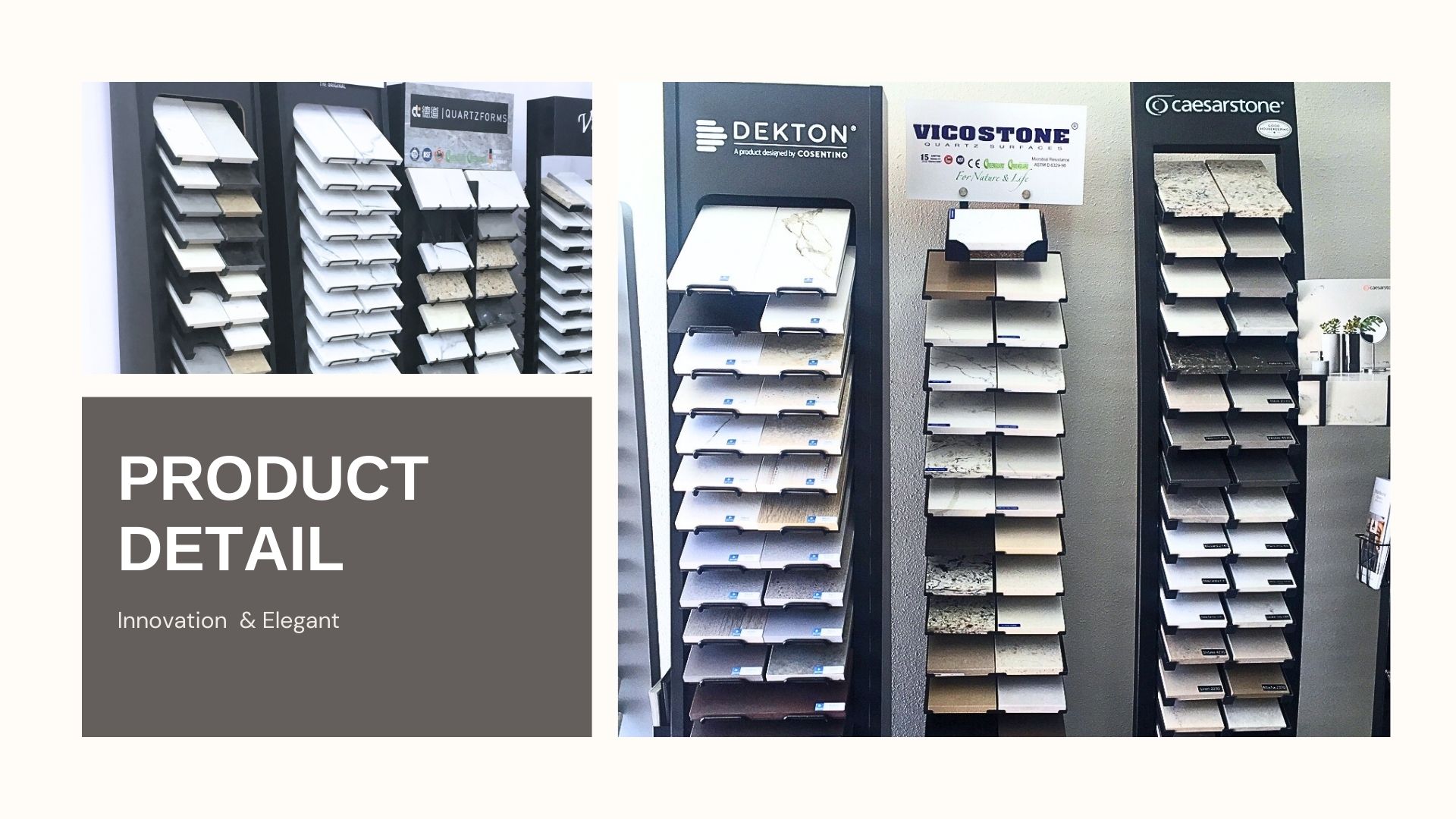 【Dispálias duráveis de pedra feita de 1.5 Folha de metal mm com superfície revestida de pó de ponta. A tela de amostra de quartzo de estilo de metal parece muito mais elegante que a estrutura do fio.